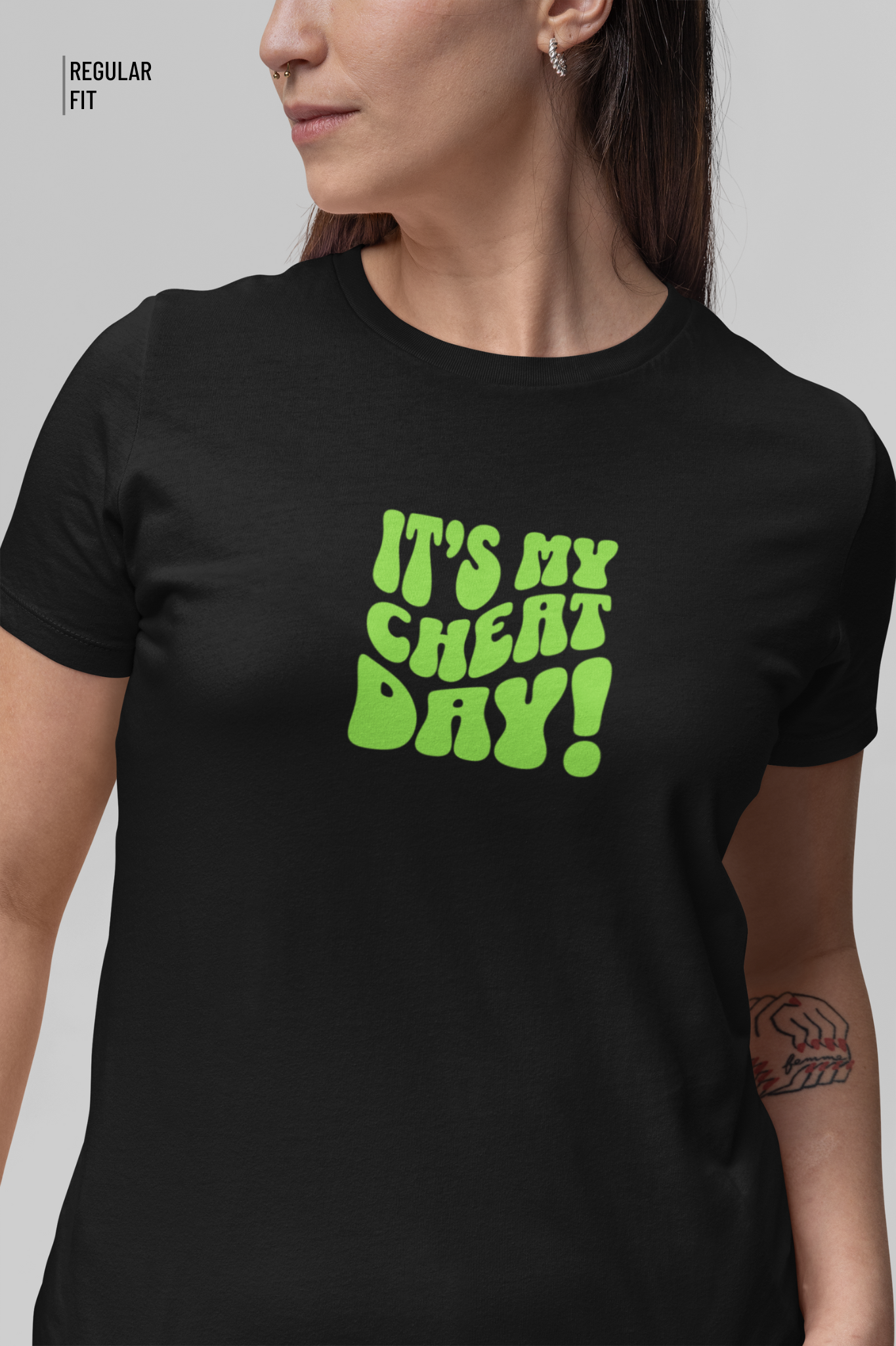Our "It's My Cheat Day" T-shirt is for those who believe in living life to the fullest—especially when it comes to indulging in some guilty pleasures. Whether you're diving into your favorite pizza, ice cream, or anything else that’s off-limits during the week, this tee is your excuse to treat yourself without guilt. Crafted from soft, breathable fabric, it’s as comfortable as your go-to cheat meal. Wear it proudly and let the world know that today, you’re in charge of your cravings!