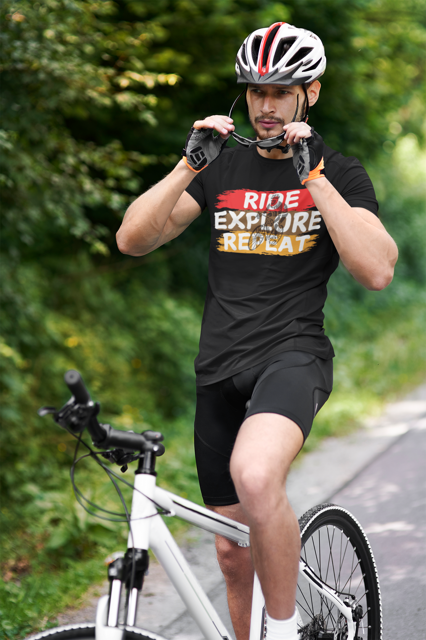 Designed for cycling enthusiasts, the "Ride Explore Repeat" T-shirt is your ultimate ride companion. Crafted comfort in mind, it’s designed to keep you comfortable whether you’re tackling tough trails or cruising through city streets. This shirt is more than just a piece of clothing; it’s a celebration of your passion for adventure and exploration.